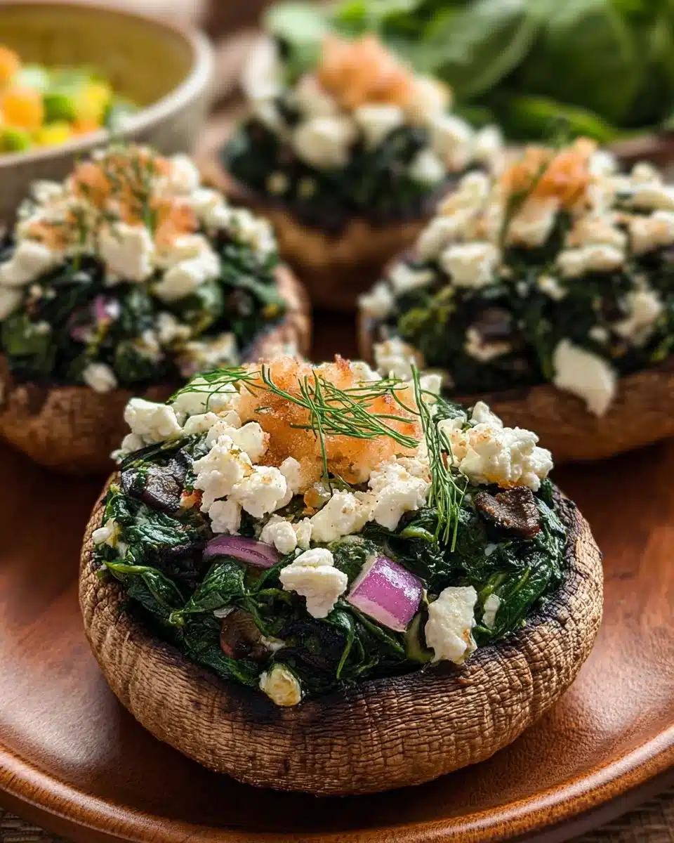 Deliciously stuffed portobello mushrooms with a flavorful mix of spinach, feta, and aromatic herbs, perfect for any occasion.