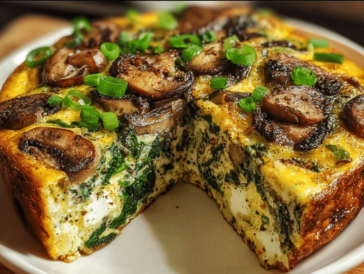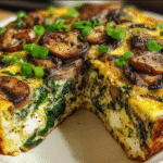 A delicious and nutritious breakfast casserole featuring spinach and mushrooms, perfect for a hearty morning meal.