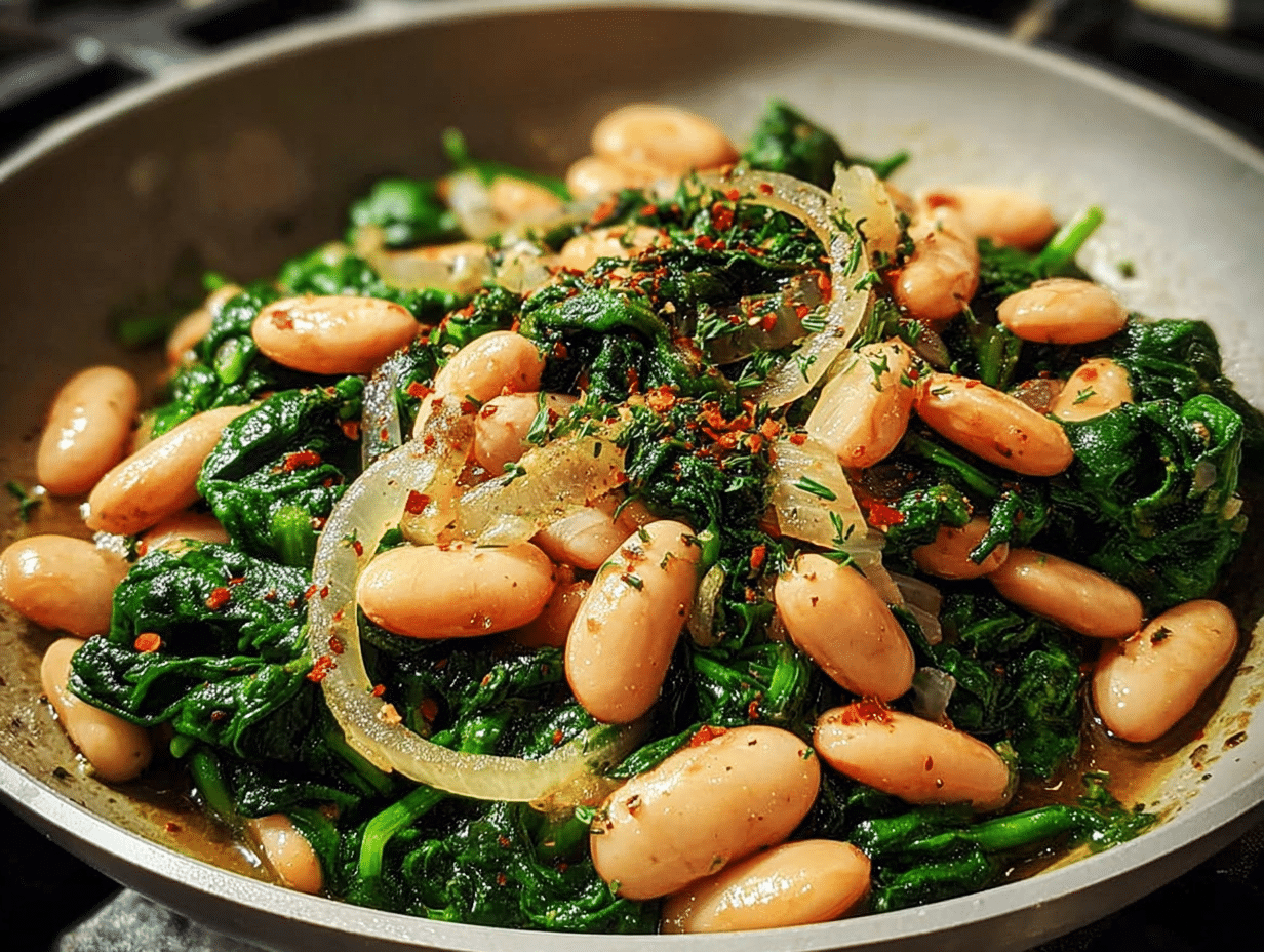 A nutritious and flavorful dish combining spinach and white beans, perfect for a healthy meal.