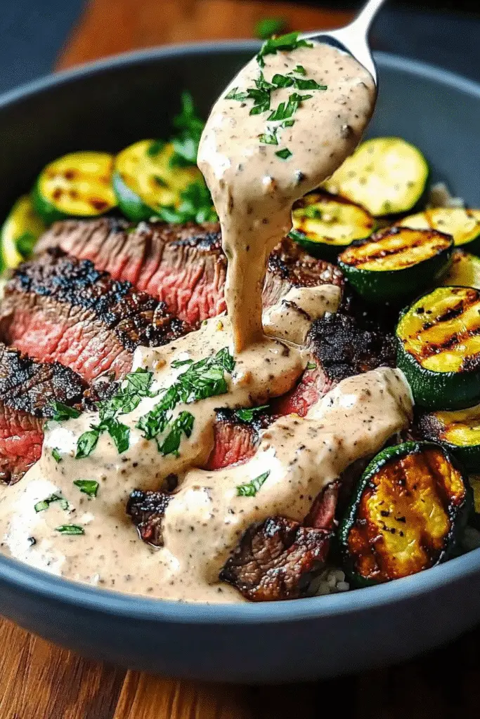 As I reflect on the joy of creating this Steak Bowl with Creamy Sauce & Grilled Zucchini, I’m reminded of how food has the power to bring us together. This dish is not just a meal; it’s a celebration of flavors, textures, and memories shared around the table. I encourage you to try this recipe and make it your own, adding your favorite ingredients and personal touches. I would love to hear about your experiences and any variations you create! Please share your thoughts in the comments below, and don’t forget to spread the love by sharing this recipe with fellow food lovers!