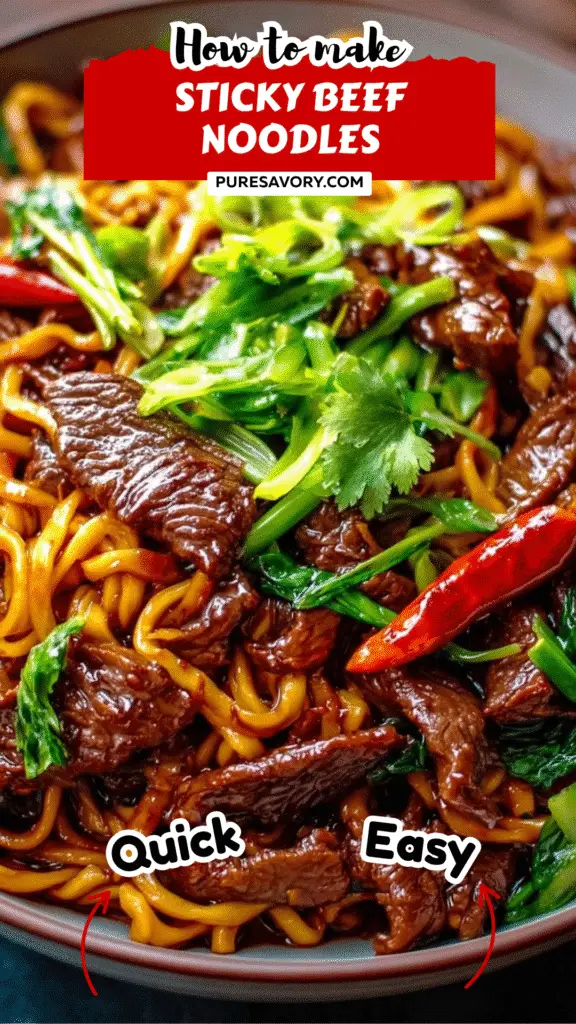 This recipe is ideal for busy families looking for a quick yet satisfying meal. It’s also perfect for health-conscious cooks who want to incorporate more protein and vegetables into their diets. Food lovers who enjoy exploring global flavors will find Sticky Beef Noodles a delightful addition to their culinary repertoire.