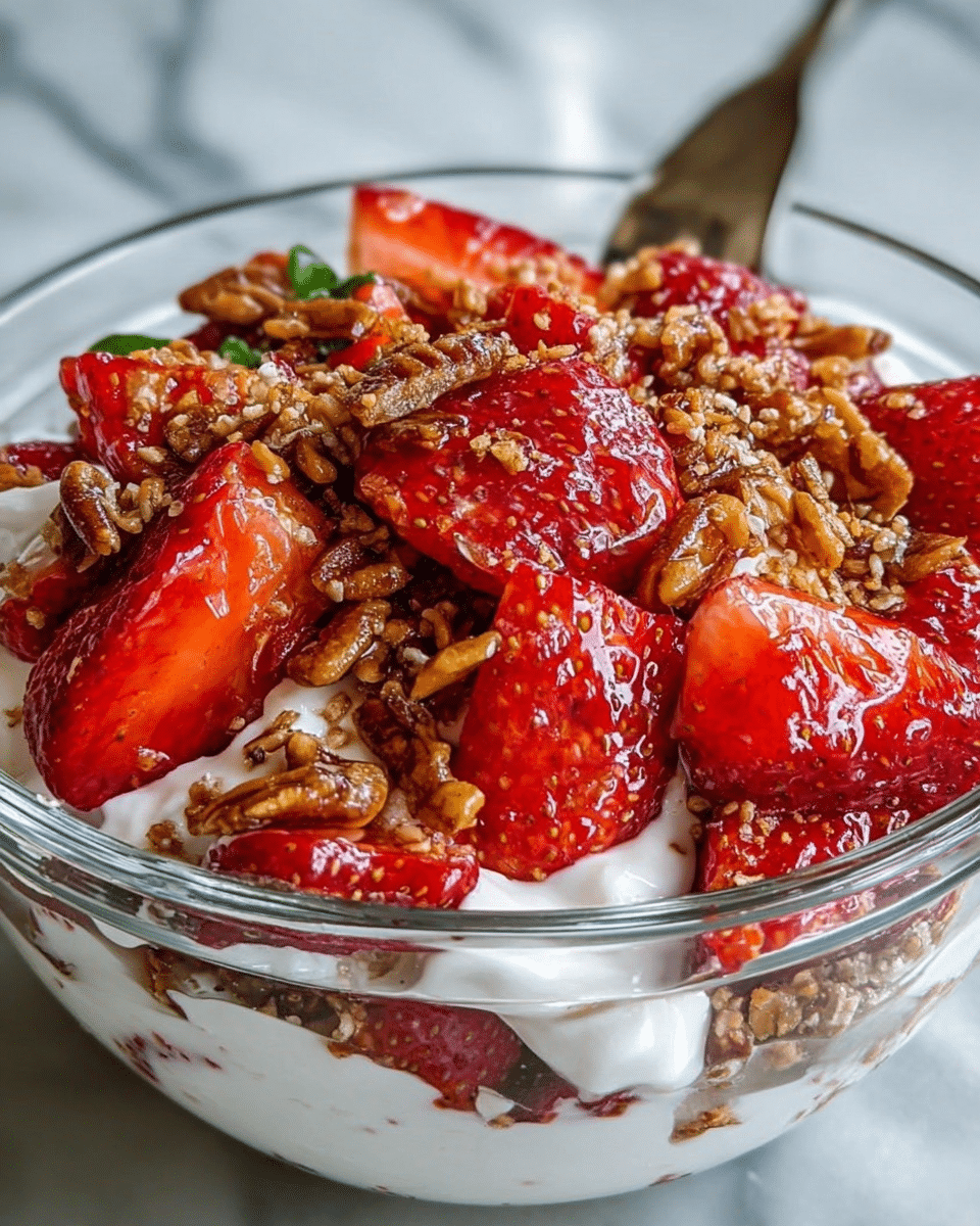 A delightful and easy-to-make salad featuring fresh strawberries and a crunchy topping.