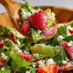 A refreshing summer salad combining crispy Romaine lettuce, juicy strawberries, and creamy feta, all tossed with a tangy balsamic dressing.