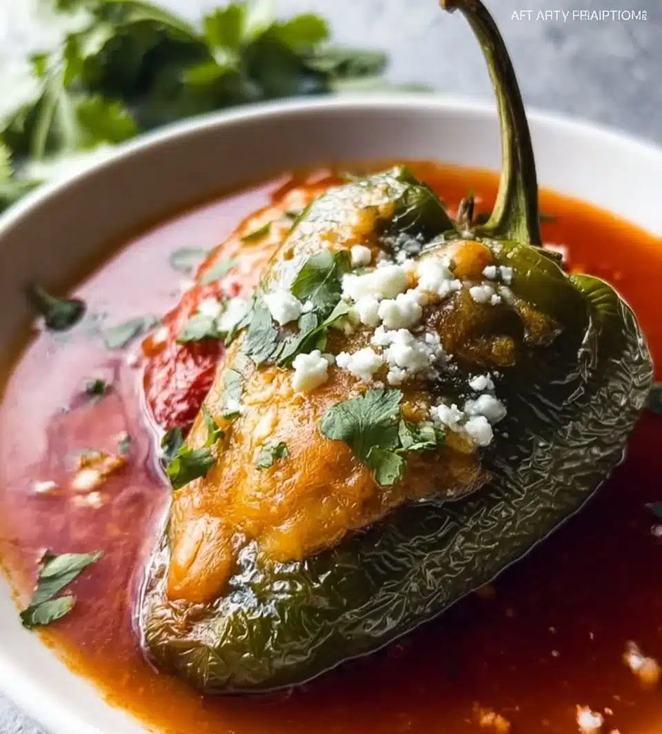 A nostalgic dish featuring roasted poblano peppers stuffed with cheese, ideal for cozy dinners and gatherings.