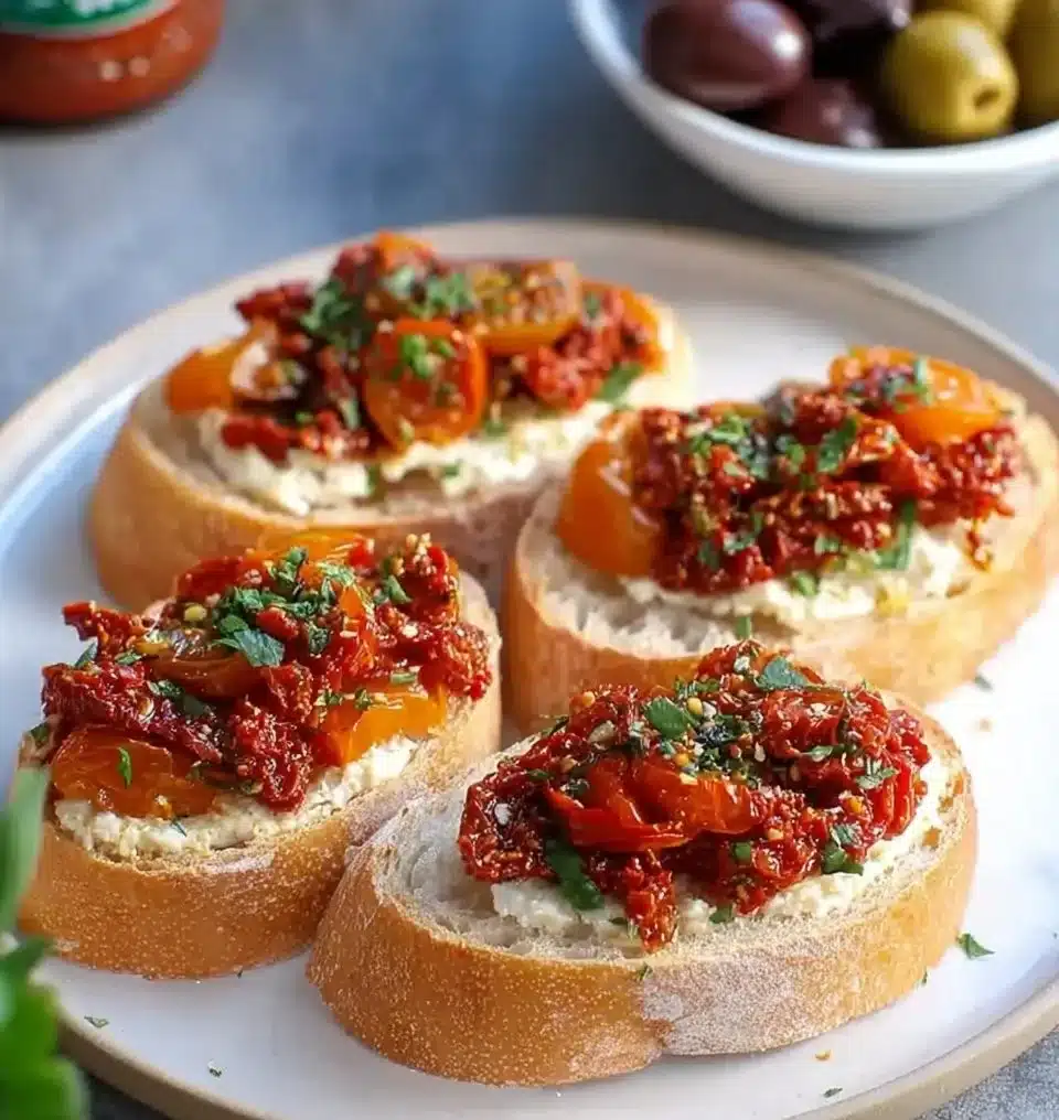 As I assemble this delightful treat, the anticipation builds. Crispy Sun-Dried Tomato Bruschetta brings to mind countless cozy nights spent with good wine and better company. The crunch of the toast against the creamy tang of the toppings is pure bliss in every bite.