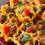 As I prepare the ingredients, the anticipation builds. Taco Ranch Bites merge the vibrant zest of taco seasoning with the creamy comfort of ranch dressing, creating a dish that is as satisfying as it is tasty. This is a dish that appeals to the kid in all of us, with a crispy layer of tortilla chips that adds the perfect crunch!