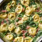 A comforting dish featuring fresh cheese tortellini and leafy spinach in a rich, creamy sauce, perfect for busy weeknights or family gatherings.