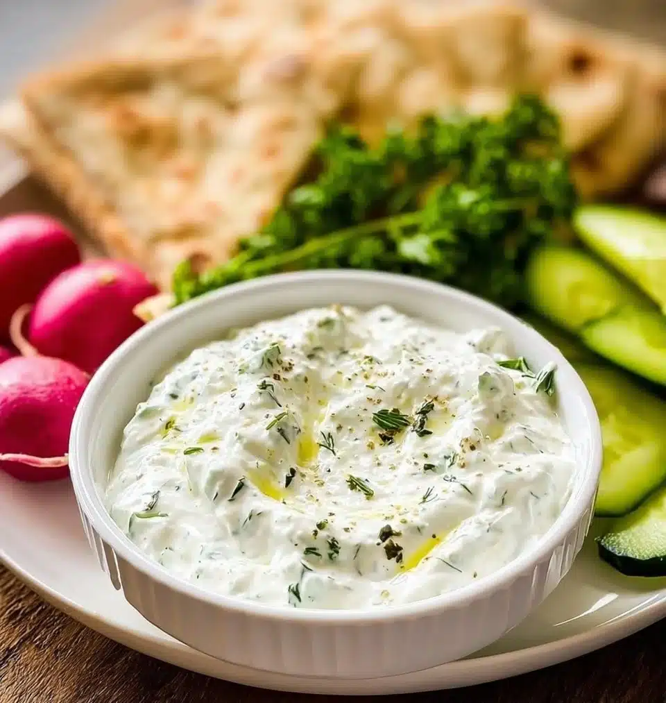A refreshing and creamy tzatziki sauce made with Greek yogurt, cucumber, and garlic, perfect for dipping and elevating any meal.
