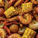 As I prepare this feast, I can almost hear the laughter of my loved ones and feel the excitement in the air. The bright colors of the shrimp, crab legs, and corn create a feast for the eyes, while the rich, savory flavors tantalize the taste buds. Each bite is a celebration of the ocean’s bounty, seasoned to perfection with Old Bay and a squeeze of fresh lemon. It’s a dish that invites everyone to dig in, share stories, and enjoy the simple pleasure of good food and great company.