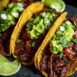 Viral Crispy Shredded Beef Tacos with Guacamole is a dish that beautifully encapsulates the essence of Mexican cuisine. Originating from the lively streets of Mexico, these tacos are a delightful fusion of comfort food and street food, making them a beloved family favorite. The crispy corn tortillas, fried to perfection, cradle tender, flavorful shredded beef that has been slow-cooked to achieve a melt-in-your-mouth texture. This combination creates a culinary experience that is both satisfying and memorable.